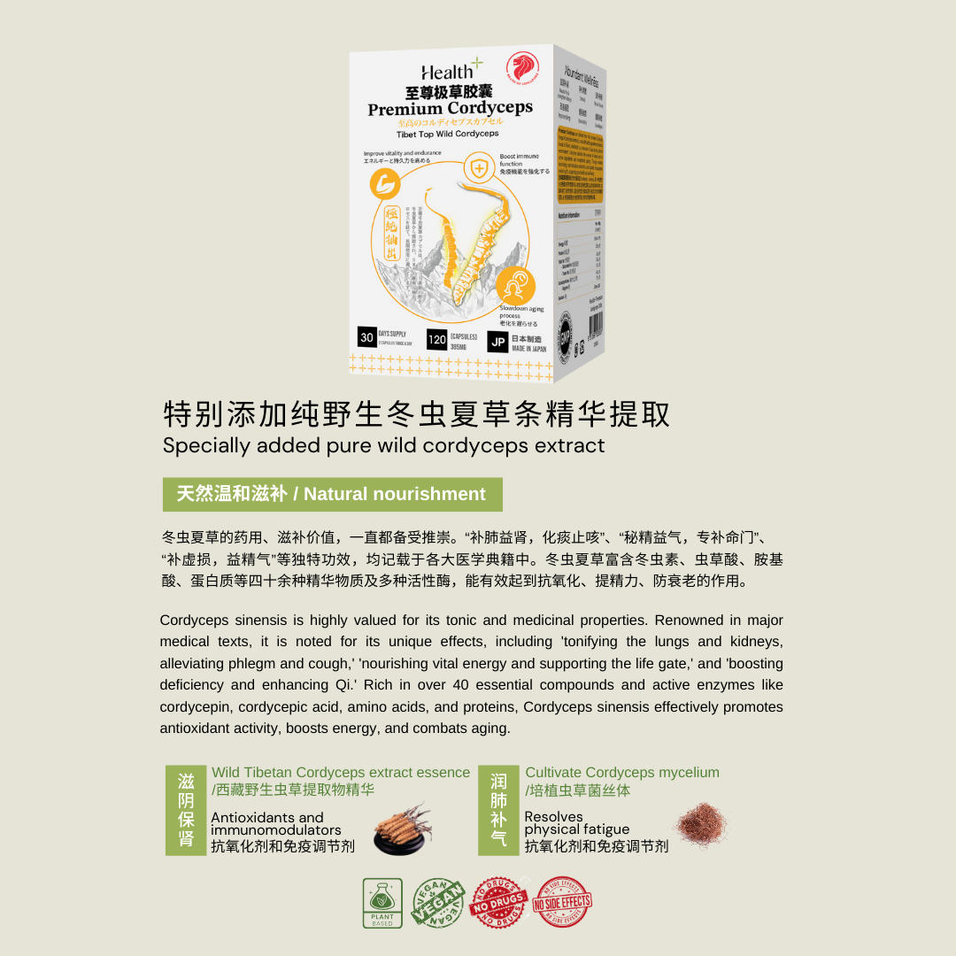 Cordyceps sinensis is highly valued for its tonic and medicinal properties. Renowned in major medical texts, it is noted for its unique effects, including 'tonifying the lungs and kidneys, alleviating phlegm and cough,' 'nourishing vital energy and supporting the life gate,' and 'boosting deficiency and enhancing Qi.' Rich in over 40 essential compounds and active enzymes like cordycepin, cordycepic acid, amino acids, and proteins, Cordyceps sinensis effectively promotes antioxidant activity, boosts energy, and combats aging.